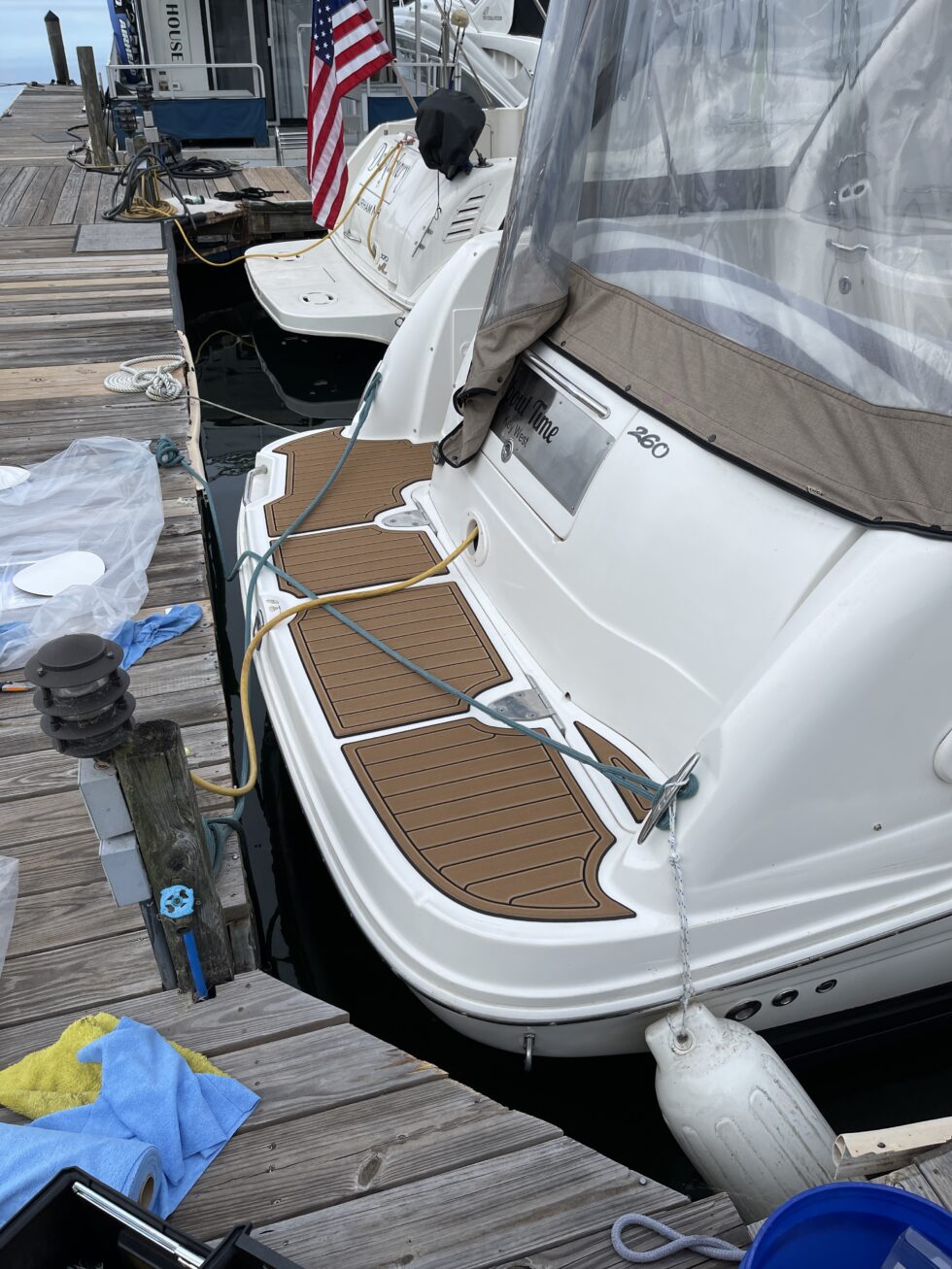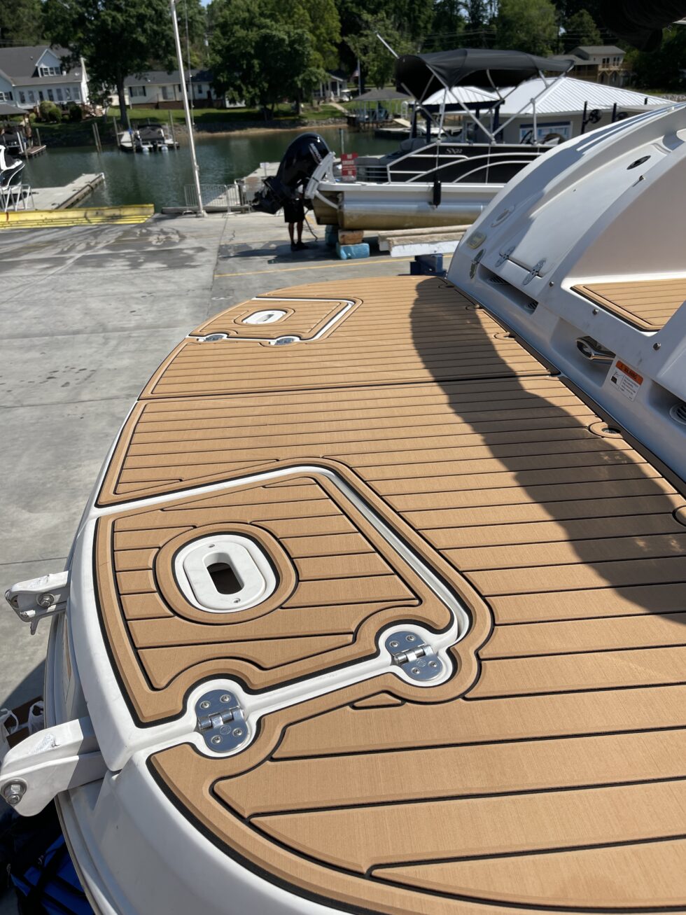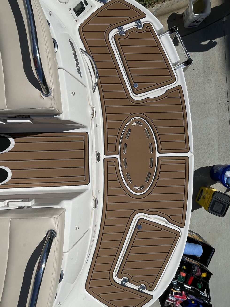 Easy to apply, peel and stick flooring with 3M™ acrylic based high-bond marine adhesive. Custom made with your color scheme and design pattern to fit your boat.